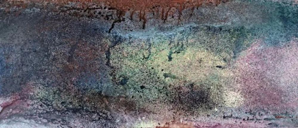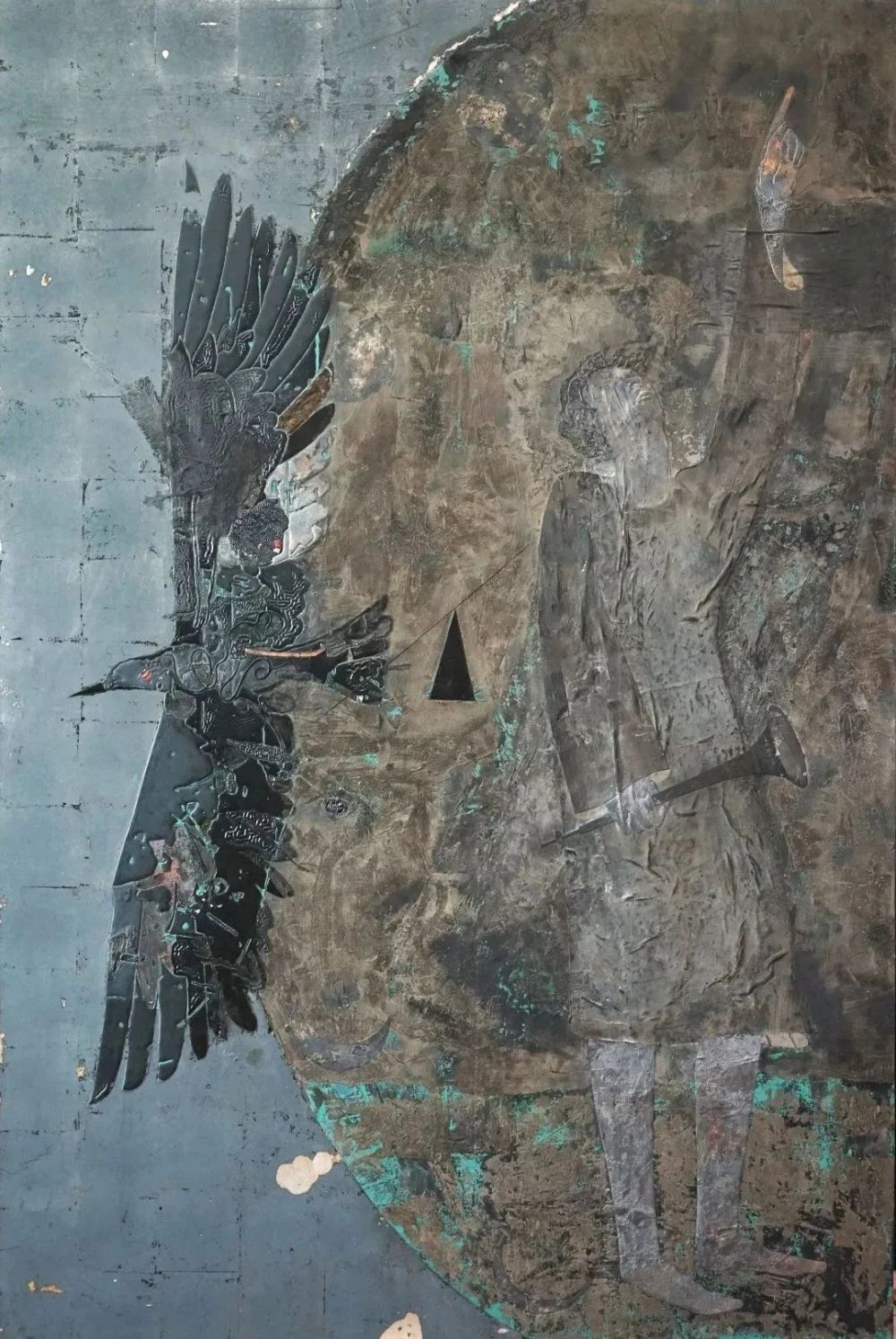 余潮松《夜暝时的鸟之二》大漆、瓦灰、金属箔?120×180cm?2022