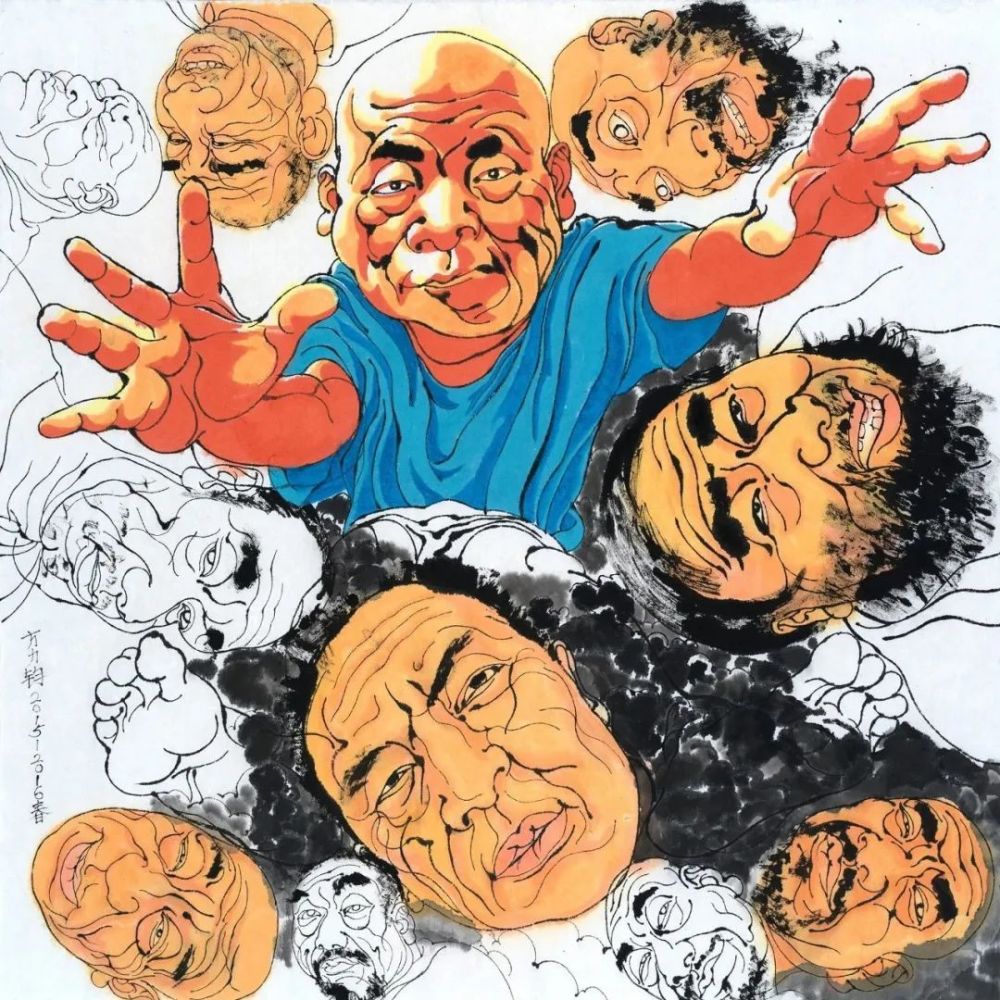 方力钧《2015—2016春》纸本水墨?71.5×71.5cm?2016