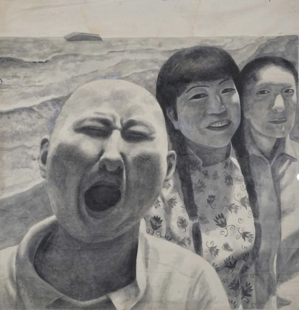 方力钧《1990》纸本水墨?99×1022cm?1990