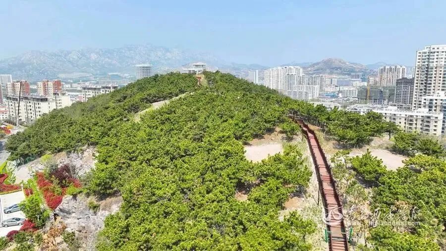 顺着山势而行,记者踏上了登山步道,抵达瞭望塔,极目远望,唐岛湾与小珠山尽收眼底,而塔山山林公园落子其中,架起了连接双方的视觉通廊,将秀美景色尽数收纳。