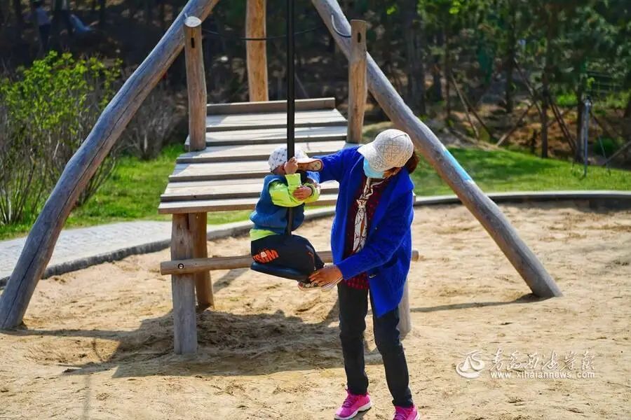 “加油宝贝,爬过来找妈妈。”花科子山公园的活力休闲区内,一位母亲正在儿童攀爬网前鼓励孩子勇往直前;