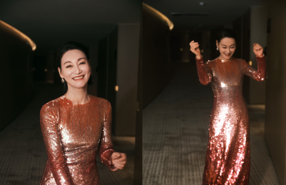 今年63岁的惠英红绝对是不服老的,从她这一身亮片拖尾晚礼服就能看得出来。