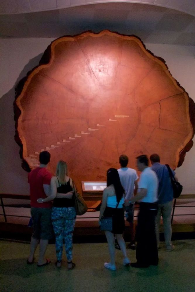我时常想,博物馆究竟该展出什么样的东西?不仅是世间生命形态万端,更有人类与自然界关系的历史,无论是和平还是冲突,哪怕是犯过的错误,曾经的索取和暴虐,都是值得理解和记住的,如同悬在头上的剑。这些巨杉切面也是如此,尽管我宁愿它们依然真实地活着。