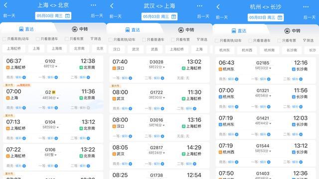 5月2日,人民日报健康客户端记者查询12306小程序发现,5月3日,上海到北京、杭州到长沙、武汉到上海等热门线路区间的高铁票已基本售罄,仅有极少车次的二等座和无座票可购买。5月4日开始,热门线路区间高铁票紧张状态逐步得到缓解。
