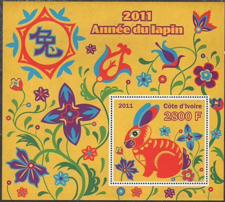 科特迪瓦于上一个兔年即2011年发行的中国兔年生肖邮票