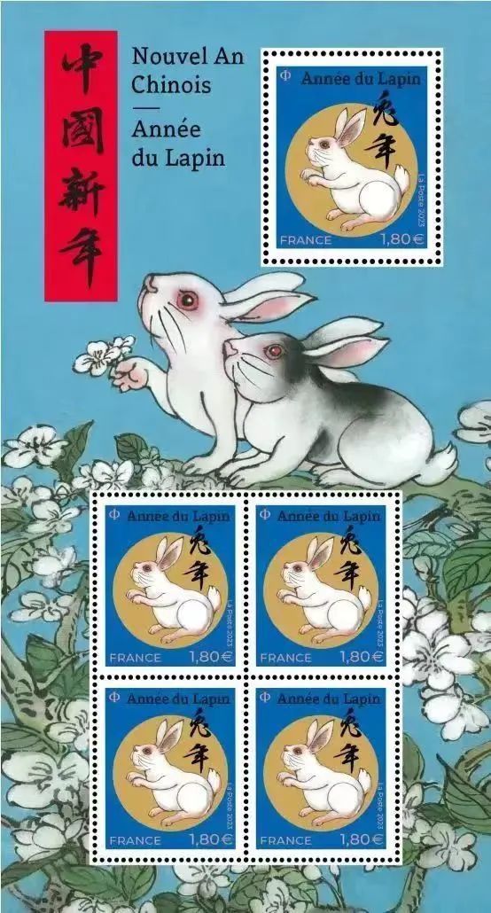 法国发行的以蓝色为背景色的中国兔年贺岁邮票