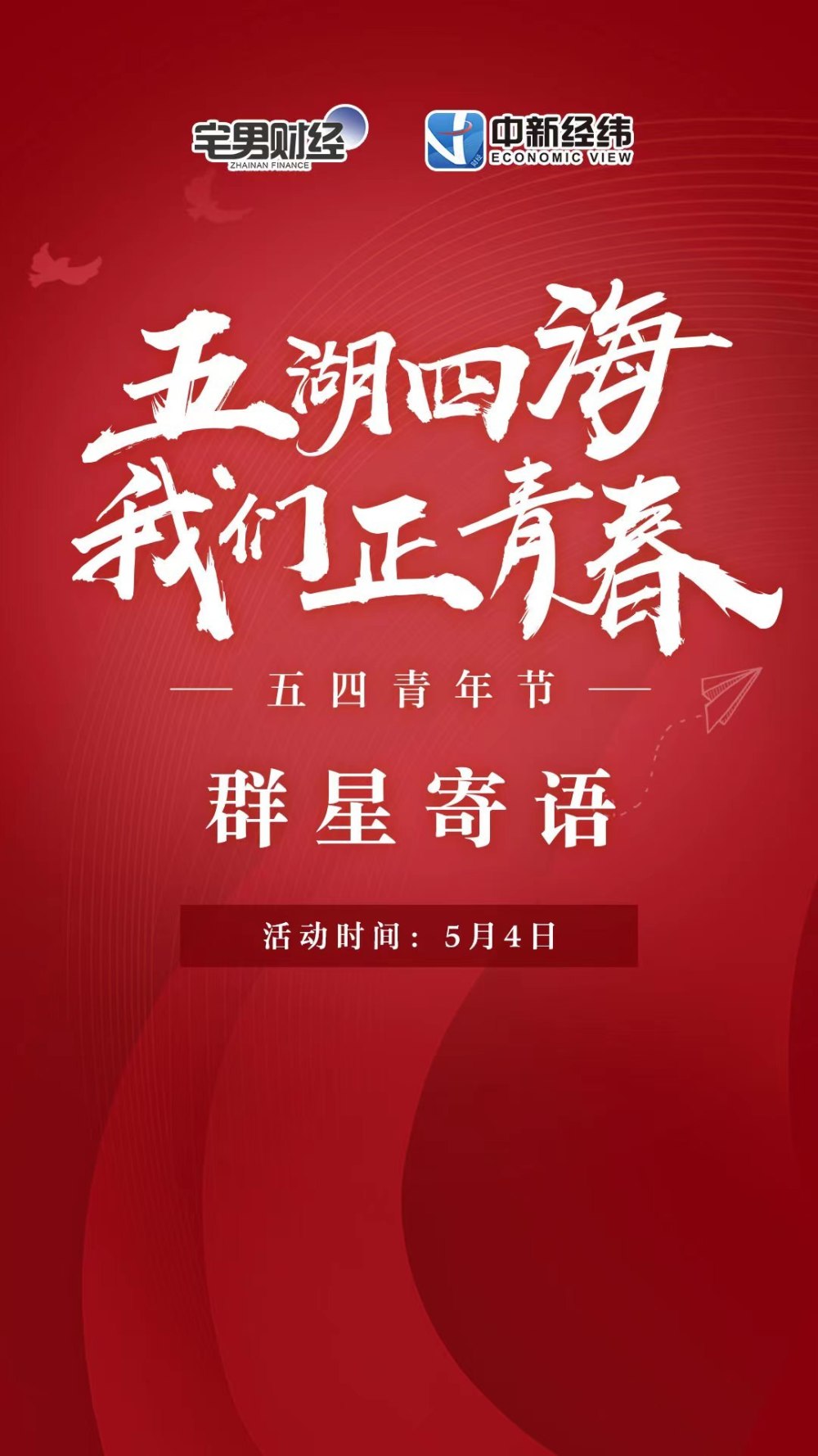 中新经纬5月4日电 (董湘依)五四青年节之际,中国新闻社旗下中新经纬发起“五湖四海我们正青春”活动,奥运冠军、天安门国旗护卫队原升旗手及多位演员歌手共同为广大青年送上寄语和祝福,传递奋进之声,展现青春力量。