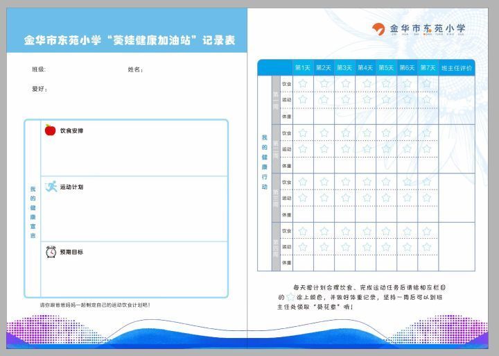 “葵娃健康加油站训练营”需要的就是这样的家校联动,并且要长期执行。活动启动时,学校举行了一个开营仪式,训练营的每位学生会收到一张记录表。学生要根据自身情况,制订个人行为改变计划,通过运动、饮食调整,设定合理的行为改变目标。