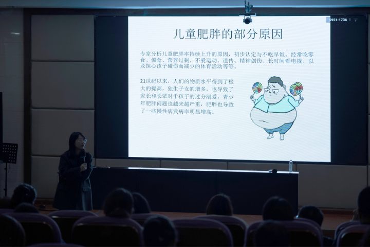 在训练营启动前,东苑小学组织召开了一次家长会,还特地请来了金华市中医院的营养科主任医师,来给家长和学生开展肥胖与健康的专题讲座。