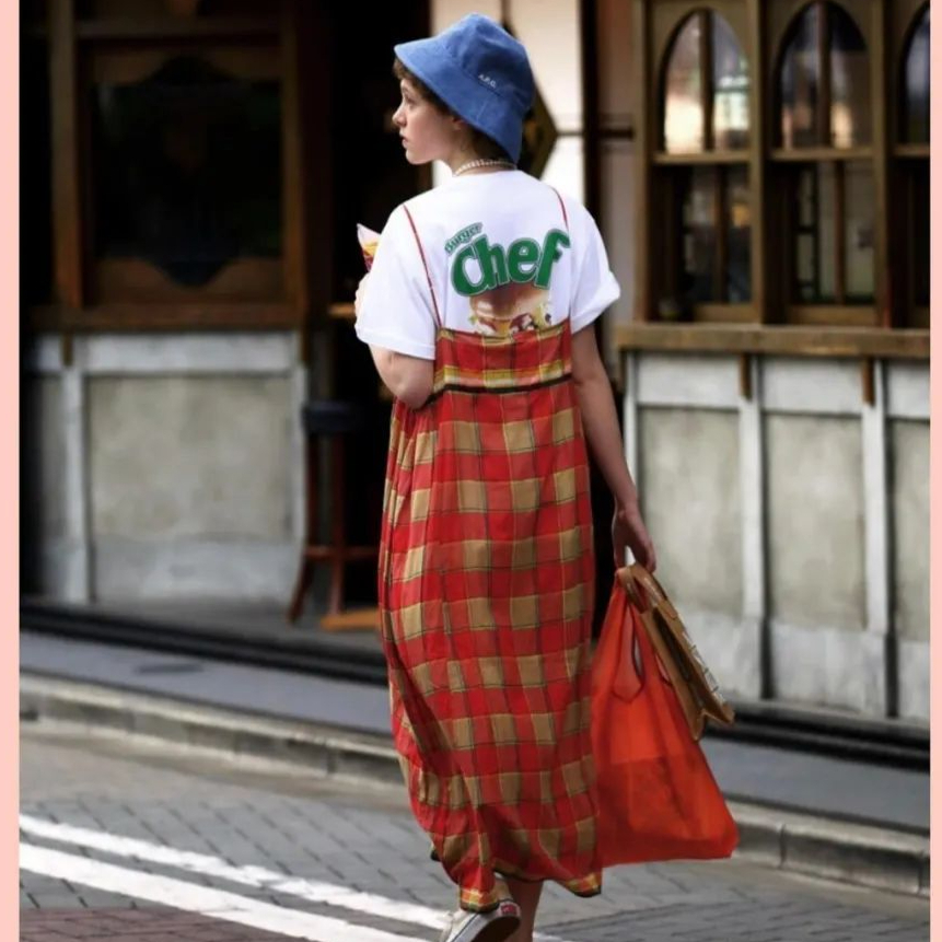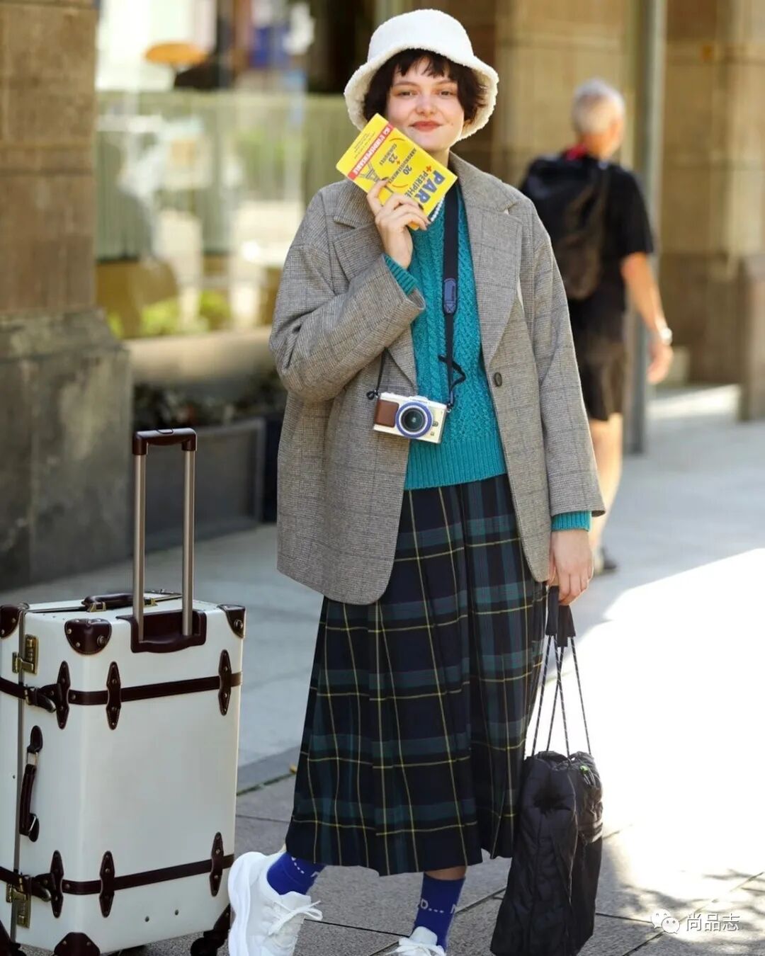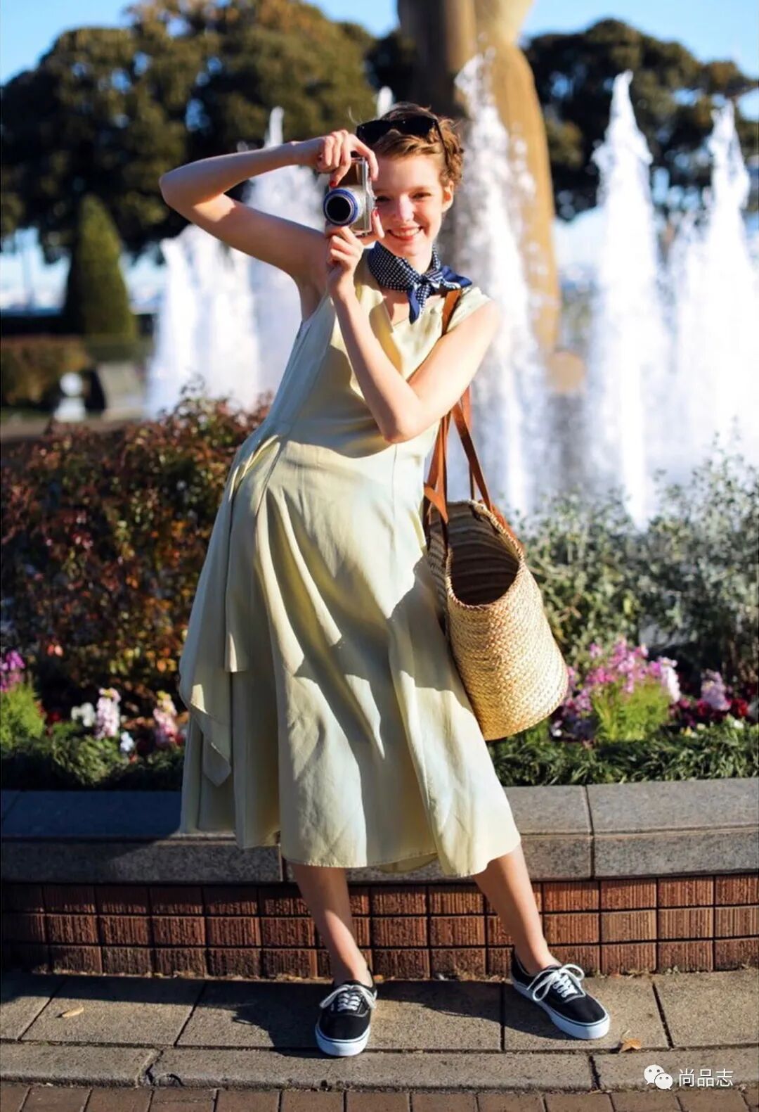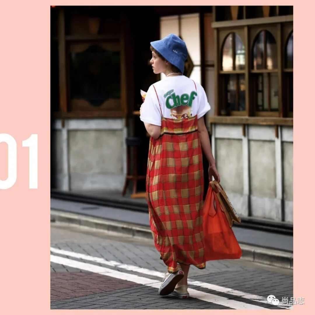 而如果是去暖和一点的地方。经典的吊带裙+T恤的叠穿就可以用起来了。