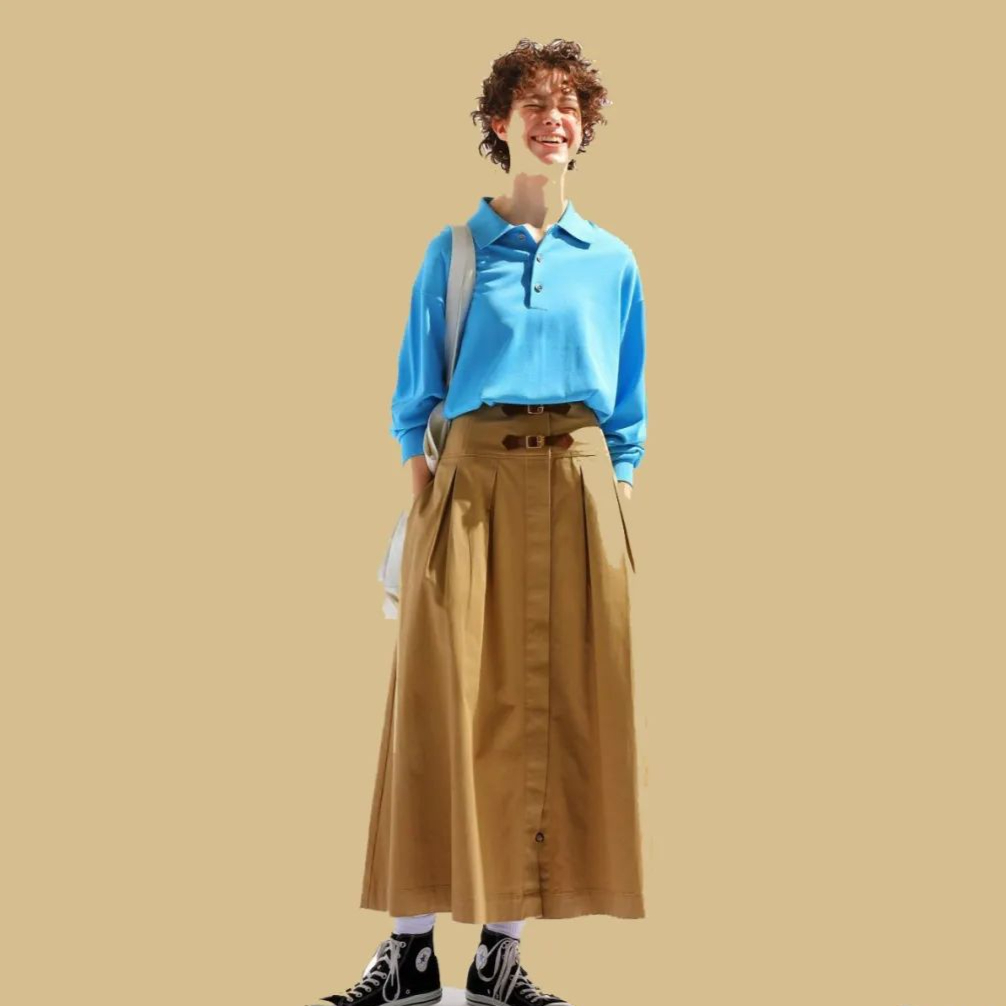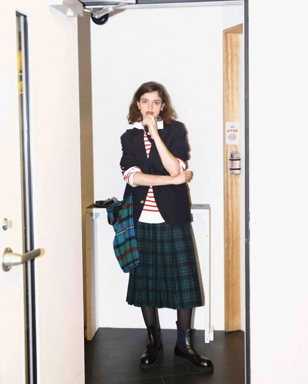 马甲的英气和裙子的柔美组合穿出娘 man 平衡的风格来。