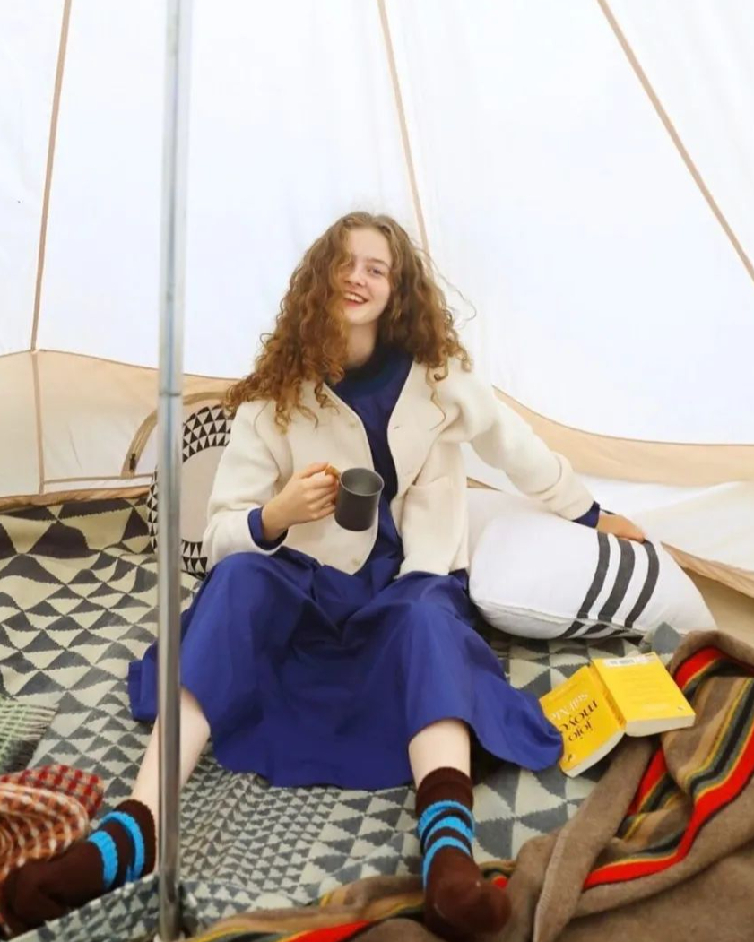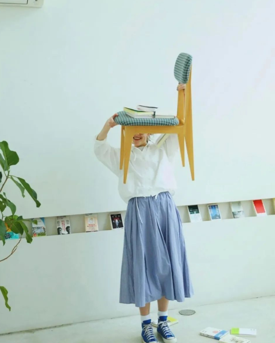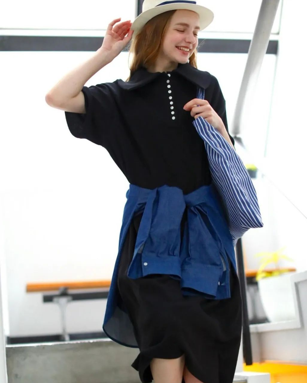 午间热了的话就把开衫披在肩上,拿来当装饰。