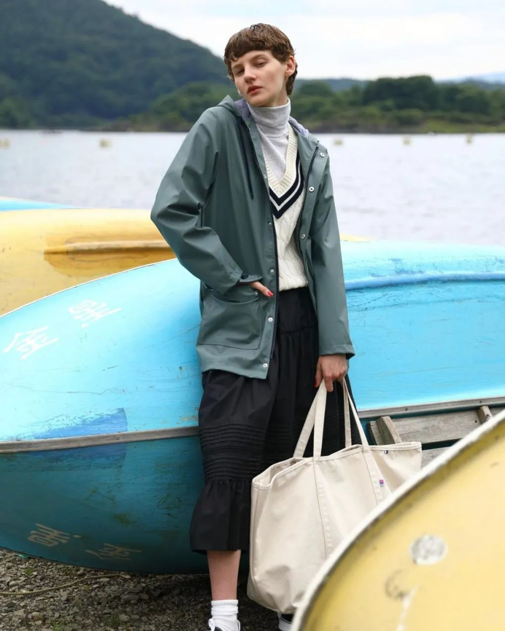 风衣还能穿一段时间。因为不是很厚长度够长,所以也是外搭的好选择。