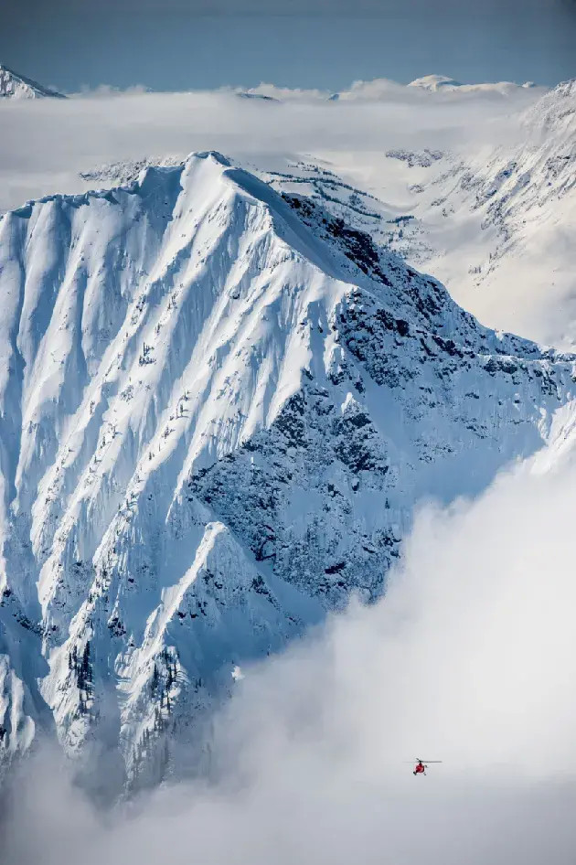 还有再就BC省东南部库特尼落基山脉的粉雪公路,这里一次串联了8个高山滑雪胜地,最经典的玩法就是一次全体验,是直升机滑雪的发源地: