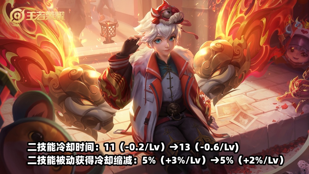 二技能基础冷却增加2秒,满级冷却不变,增加了前期二技能CD。