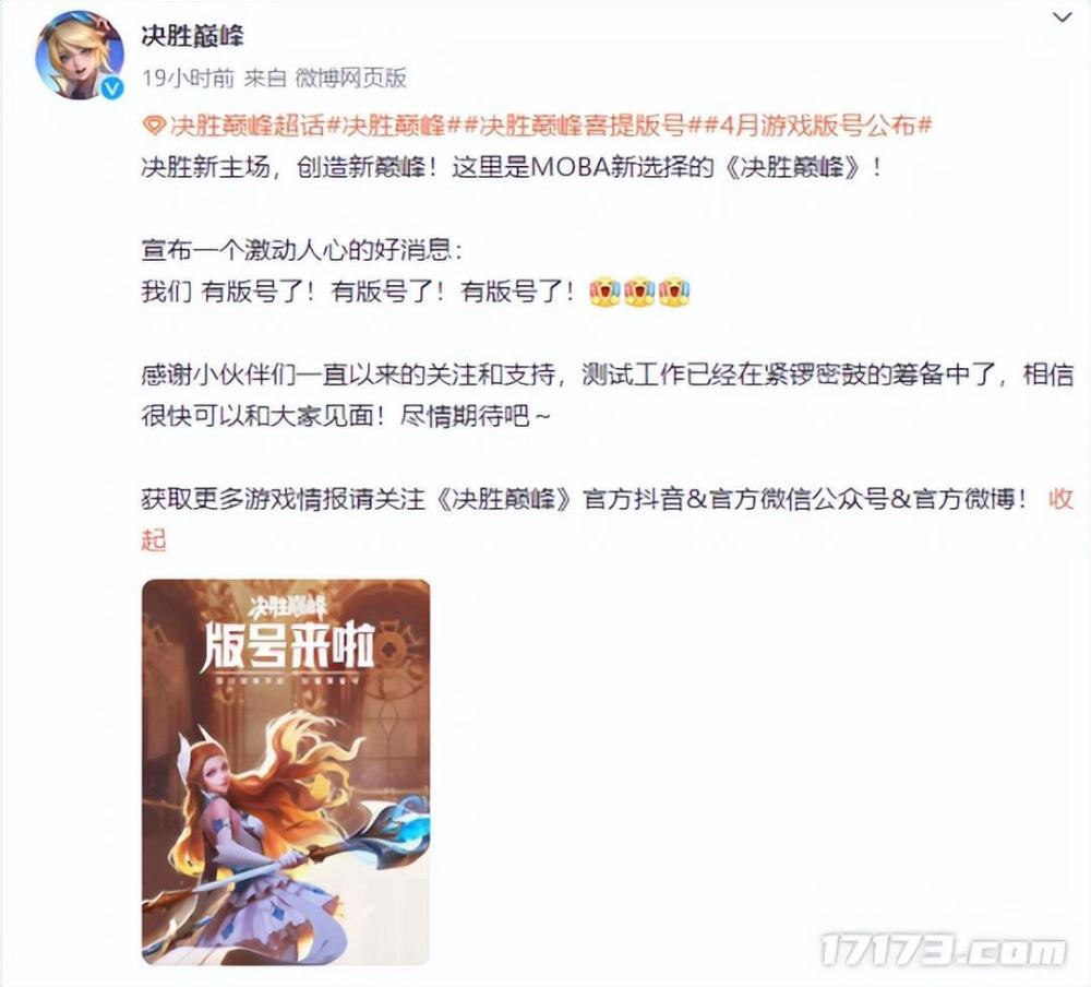 拿到版号后,官方微博表示游戏的测试工作已经紧锣密鼓的筹备中,相信很快就会开启测试了。届时,腾讯的《王者荣耀》或许会面临上线以来最大的一次危机挑战。