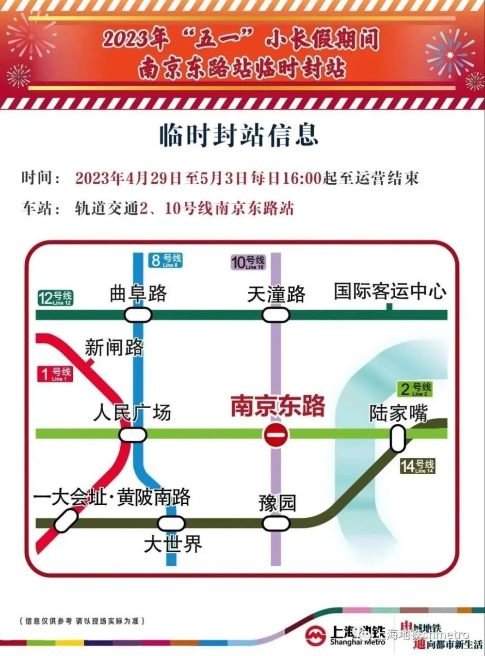 据申通地铁集团消息,上海地铁今天(5月3日)16时起,地铁 2、10号线南京东路站继续实行封站:
