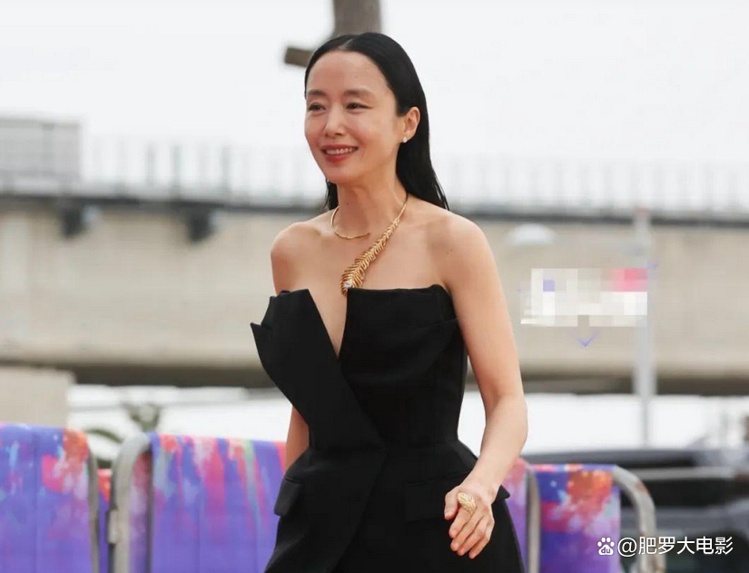 已经年过50的全度妍一身黑色抹胸裤装飒爽十足,凤凰尾的项链也令造型多了几分华贵,虽然笑起来皱纹很明显,但身形气质都完全在线,唯一美中不足的就是发型,如果不是姐姐太飒今天就算翻车了。