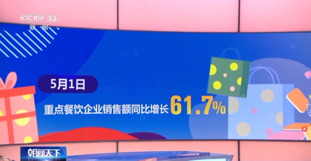 餐饮休闲类消费火热,重点餐饮企业销售额同比增长61.7%。