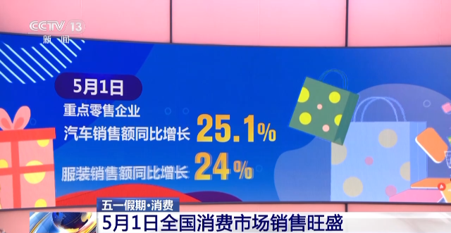 假期出游热情高,消费市场也十分火热。据商务部商务大数据监测,5月1日,全国重点零售和餐饮企业销售额同比增长15.6%。