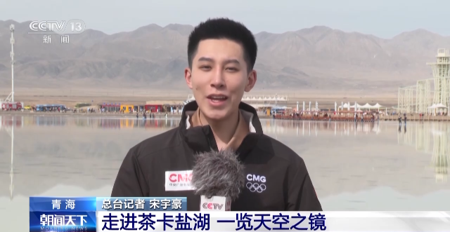 总台记者 宋宇豪:我现在所在的位置就是位于乌兰县茶卡镇境内的茶卡盐湖。