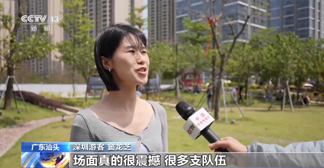 深圳游客 窦龙芝:场面真的很震撼,很多支队伍,鼓声响起的时候,心也跟着在颤。