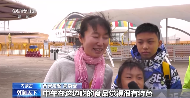 西安游客 高崇宏:我们心情非常激动,感受到大漠的风情非常壮观,中午吃的食品非常有特色。