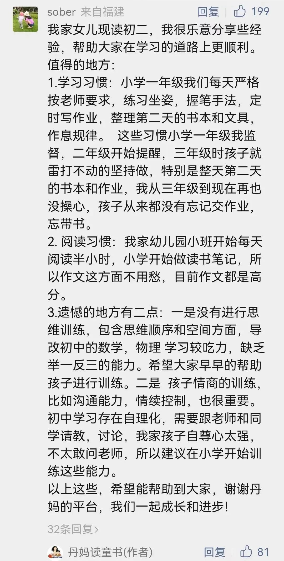 另外三分之一的内容,则是我和小伙伴刀妈(她家姐姐初一,弟弟三年级)蹲守各流派名师和学霸家长的言论、作品,再结合自身情况、心得总结出来的。