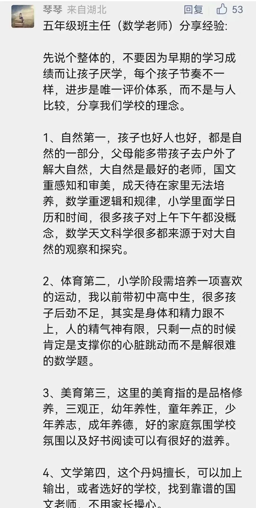 来自五年级班主任琴琴的经验谈: