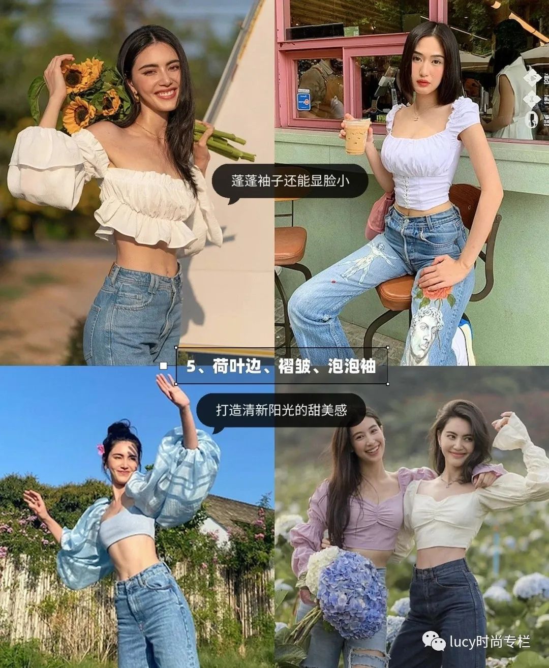 “在牛仔裤穿搭中,它天生有着随性慵懒的特质。它不管和上衣怎么搭配,都能make出它专属的特色风情。牛仔裤,它看似普通,但只有我们穿上身才知道它究竟能让我们有多迷人。像lucy就超爱泰国女明星mai的牛仔裤穿搭,她把牛仔裤穿出了性感又高级的味道,值得我们去重点学习/借鉴。”