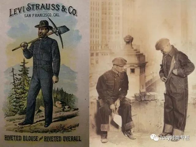 回溯源头,最早可追溯到19世纪淘金热时期的美国。当时,一名叫Levi Strauss的杂货店老板和他的裁缝,采用防水布制作了一种结实耐磨的“罩裤”,这种“罩裤”很快得到工人们的青睐。