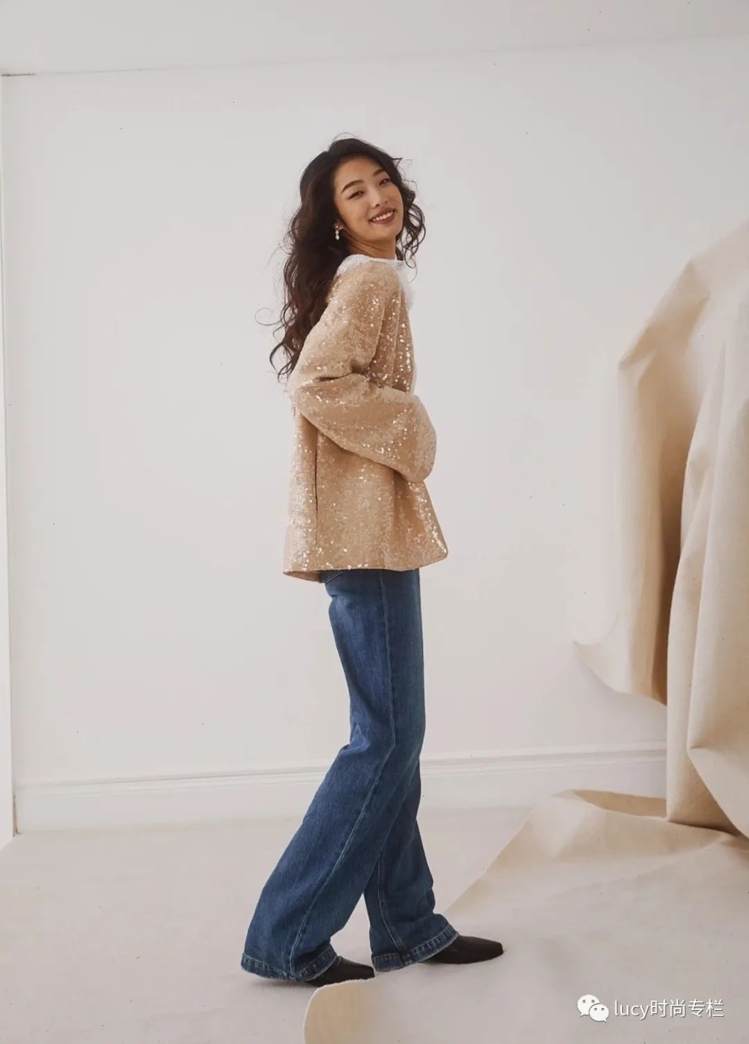 没错,它就是牛仔裤,瞧,我们的清冷系白月光——秦岚姐姐,这一穿上牛仔裤,再搭配一件灰色针织的外套,戴上一对大圆圈耳环,温婉又迷人。牛仔裤不分国界,有着国际通用的搭配公式,是人手一条的裤子。特别是有塑形效果的牛仔裤,它极大程度地凸显了我们的身材,让我们前凸后翘了起来,迷人指数直接UP↑。