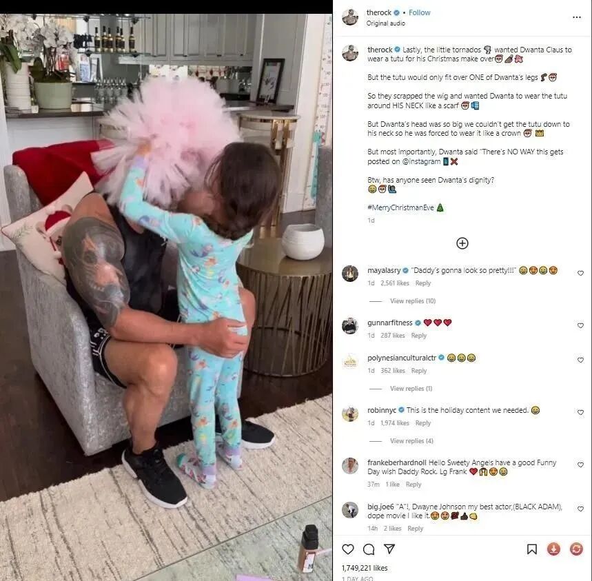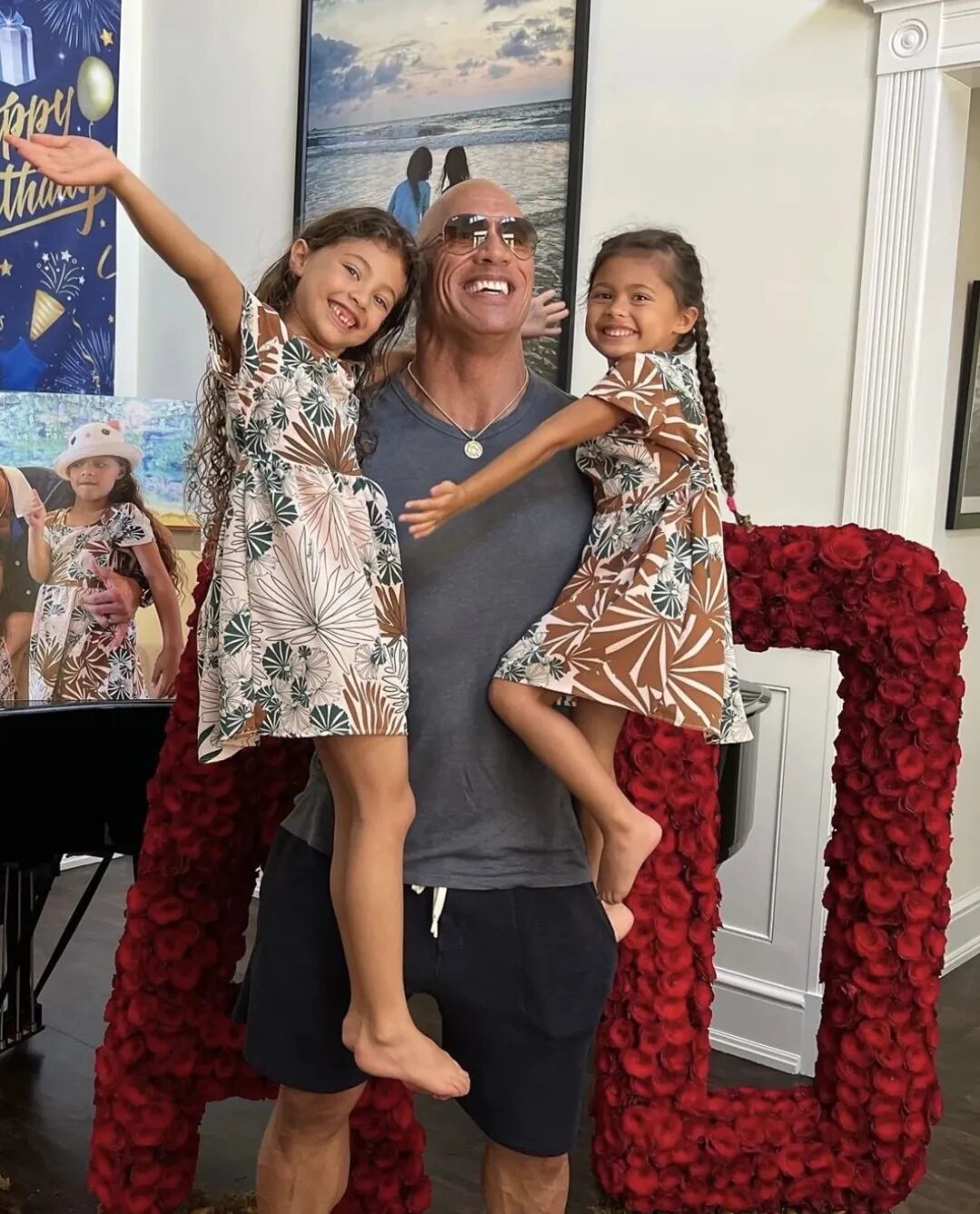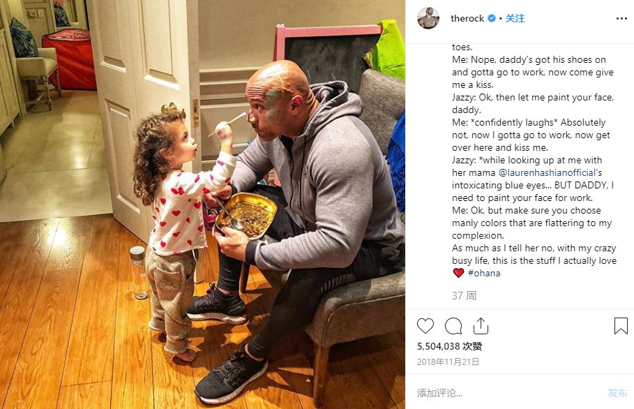强森也不生气,还乐呵呵地用炫耀的口吻,把自己与女儿们的日常发在ins上: