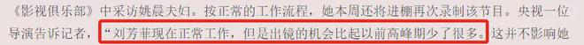 也有知情人士透露:刘芳菲现在正常工作,但是出镜的机会比起以前高峰期少了很多。