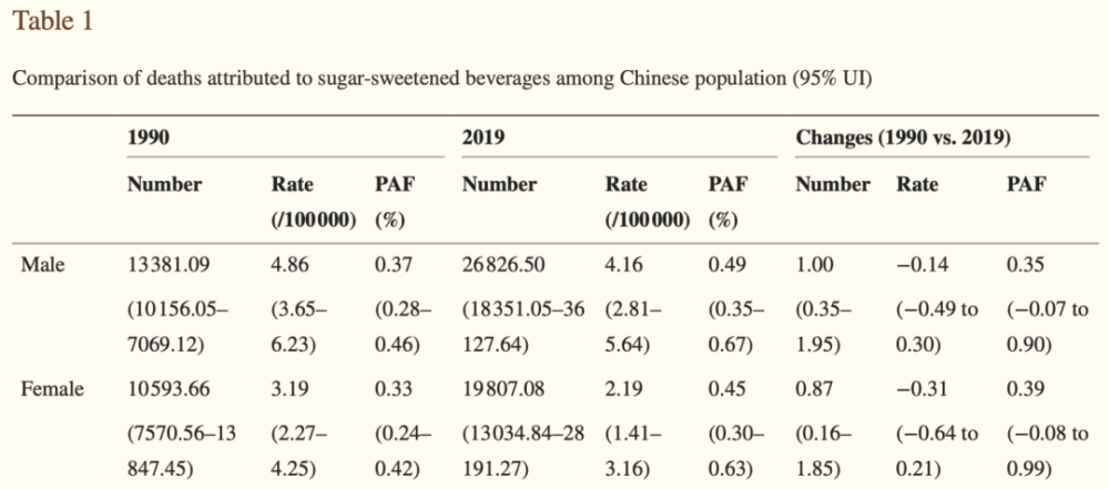 此前,中国疾控中心的研究团队曾分析了1990-2019年这30年期间中国高糖饮料摄入量造成的死亡和疾病负担,得到的结果令人“咋舌”——
