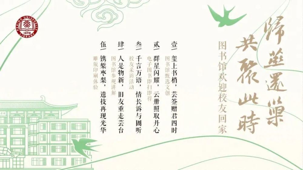 为了迎接各位校友的回归,校内各主要场馆也已敞开大门,静候大家的脚步。