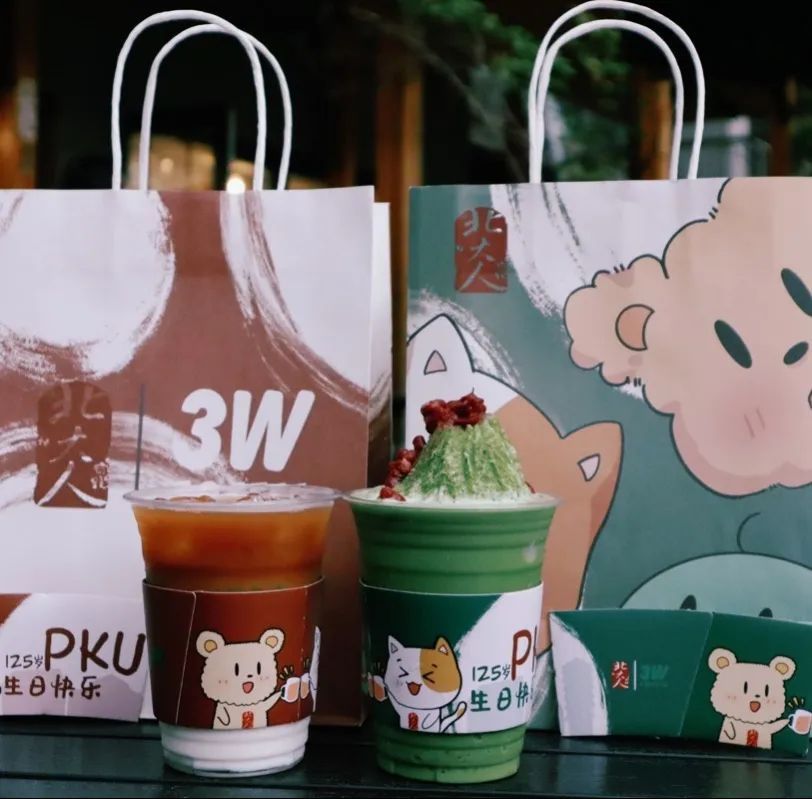 5月3日-4日,在3W咖啡厅,校友出示校友卡均可享受三款指定咖啡(拿铁咖啡、卡布奇诺、美式咖啡)五折优惠,并免费获取北大人&3W校庆联名限量款咖啡周边。