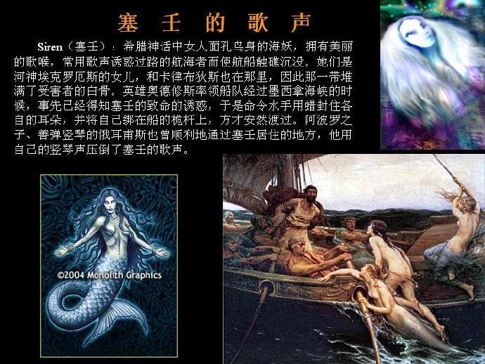 在你们的认知中,是不是对美人鱼的认知还停留在人鱼公主和王子的凄美爱情故事呢,关于他们的传说风靡了整个地球,但世人一直无法眼见为实。在讲美人鱼存在的新证据之前,我先简单介绍一下全球各地传说中的美人鱼,在整个欧洲人鱼体系里面,最有名的就是希腊神话中的海妖塞壬,上半身是非常漂亮的女性,下半身却是鱼尾,非常擅长用歌声来魅惑人类,要么吃人,要么制造灾难。德国的人鱼叫罗蕾莱,有着一头金色的头发,喜欢吃过往的水手。爱尔兰的人鱼叫海上的歌手,头发和尾巴都是绿色的,手指间有透明的瓣膜像蹼一样。