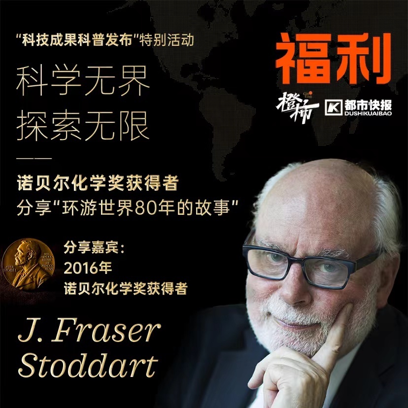 科学的定义是什么?人生的意义在哪里?未来科学如何改变人类命运?J. Fraser Stoddart教授将与你一起讲科学、聊人生、谈梦想。20个免费对话诺奖得主的名额,面向全市范围内中学生开放(也可锁定“浙大杭州科创中心”视频号直播)。
