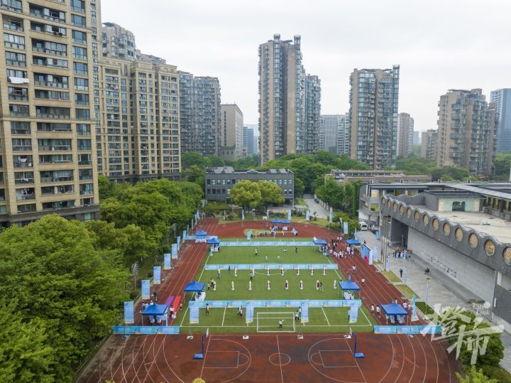在两人三足、足球障碍赛、盲盒颠乒乓等有趣、简单的运动项目中,大家边运动边学习英语知识,通过全民运动的方式,迎接杭州亚运会的到来。