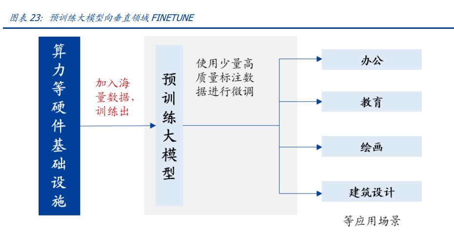 龙头资源禀赋优异,有望在 AI 浪潮中抢占先机。在“大模型+行业 FINETUNE”发展模 式下,下游垂类场景需要将通用大模型针对特性化数据集进行再训练,从而形成垂类场 景专属大模型,如 Bloomerg 利用自身丰富的金融数据源,基于开源的 GPT-3 框架再训 练,开发金融专属大模型 BloombergGPT。在大模型接口开放、技术平权背景下,数据资 产为垂类场景 AI 开发最核心壁垒,优质数据要素对应高效、高适配度的 AI 模型。龙头 设计院基于业内领先的案例库及数据池,有望开发或联合开发更强大、行业适配性更优 的 AI 算法平台,并通过持续的行业数据积累迭代算法,优化设计效率及设计品质。
