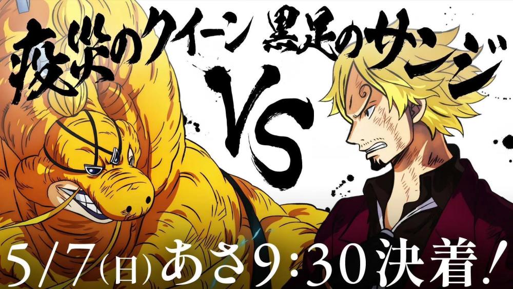 下一集就是山治与疫灾奎因的大决战,官方已经放出了他们决战的预告片,他们将会在5月7号分出胜负。山治与疫灾奎因有一些关系,疫灾奎因是科学家,与山治的父亲在一起工作过,因此他很了解杰尔马的高科技,山治与疫灾奎因的战斗太合适了。