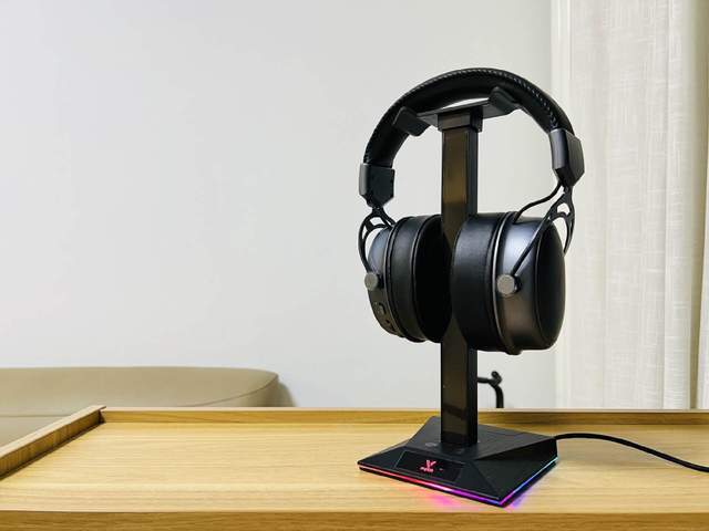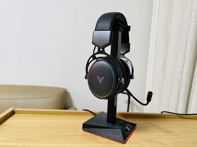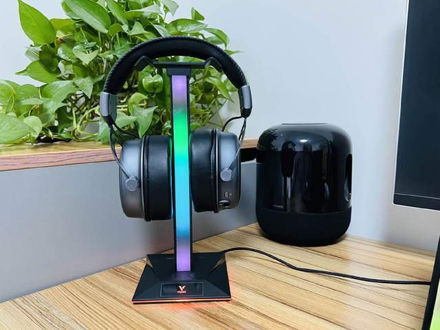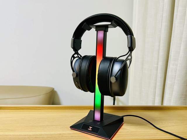 VH10RGB拾音灯游戏耳机支架的设计也非常时尚。支架的外壳采用了金属材质,显得非常有质感。支架带有RGB灯效,能够与VH800游戏耳机的灯效完美匹配。同时,支架还可以随意调节高度和角度,以适应不同玩家的需求。