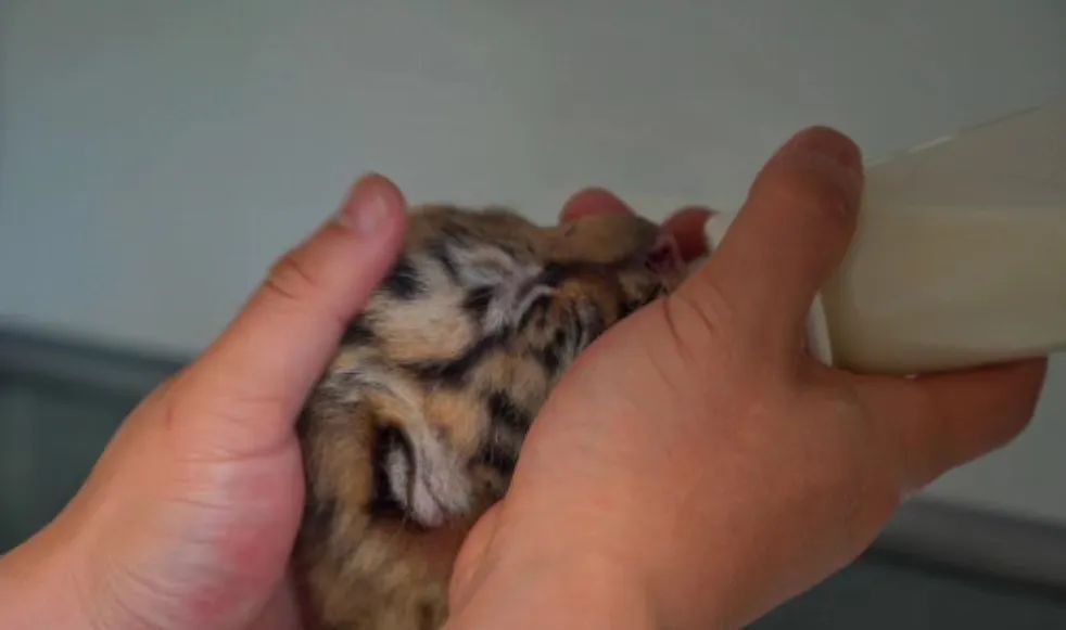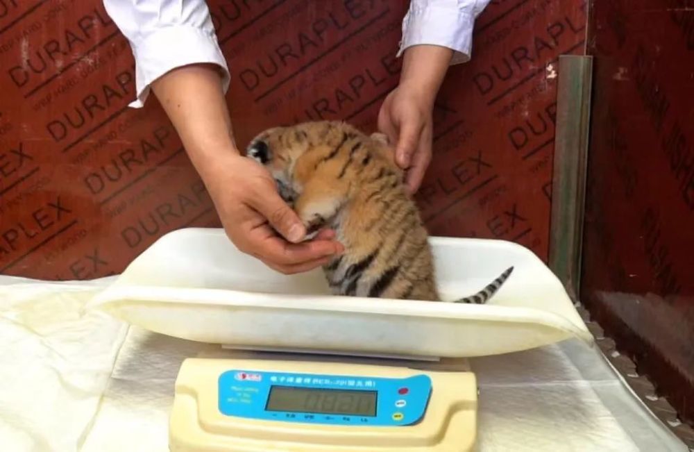 作为有着近20年工作经验的东北虎“奶爸”,李鑫照顾起小虎非常娴熟。“我们每隔4小时给小虎喂一次虎奶粉,一次60毫升左右,随着日龄的增长,奶量还会逐渐增加。目前这几只小虎的体重都由刚出生的2斤2两左右生长到3斤多,最大的一只有3斤六两,成长状况良好。”