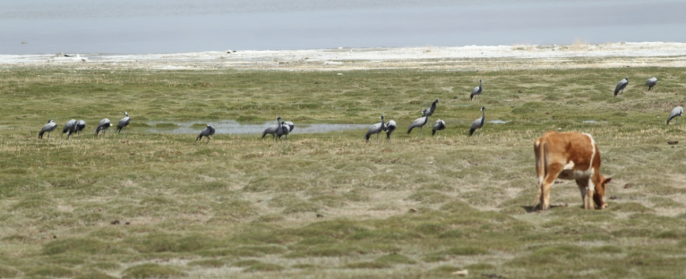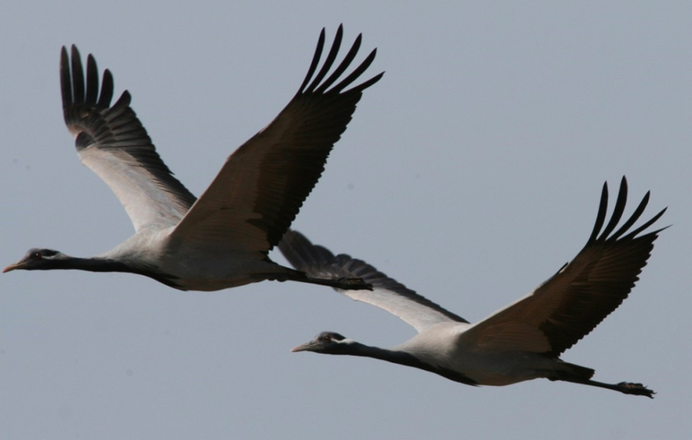 云间有数鹤,抚翼意无违(张九龄·唐)。湿地,如塔克拉玛干沙漠边缘的塔里木河流域和巴尔库拉湖,是蓑羽鹤迁徙途中重要的停留地和栖息地。印度北部的湿地则是蓑羽鹤重要的越冬地。在飞越喜马拉雅山之前,蓑羽鹤要穿过塔克拉玛干沙漠,这里也是它们在向地球之巅发起挑战之前的最后一个补给站。