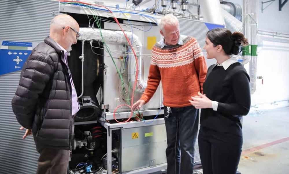 上图:左起:Mohsen Assadi教授、工程师Bjart Hetlelid和博士研究员Reyhaneh Banihabib,世界上第一台使用纯氢作为燃烧燃料的燃气轮机。