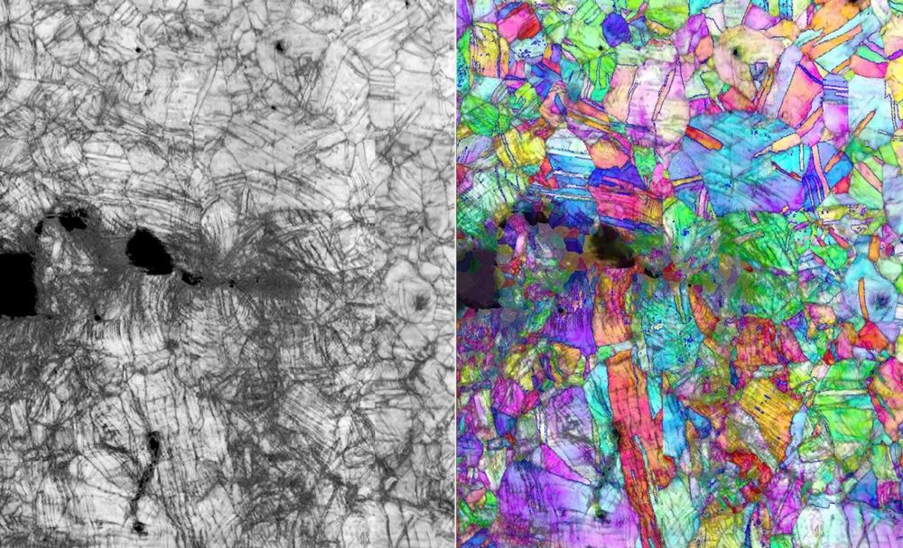 上图:铬、钴和镍合金晶体结构的显微图像,因为它可以防止裂纹(暗区)扩展。