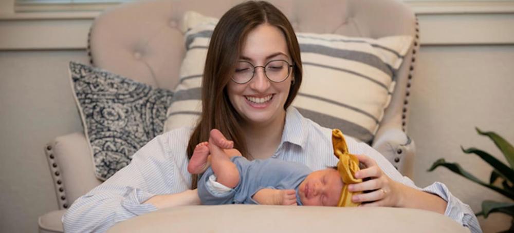上图:母亲艾米丽和婴儿罗比是第一批在子宫内接受新的干细胞疗法治疗脊柱裂的人。