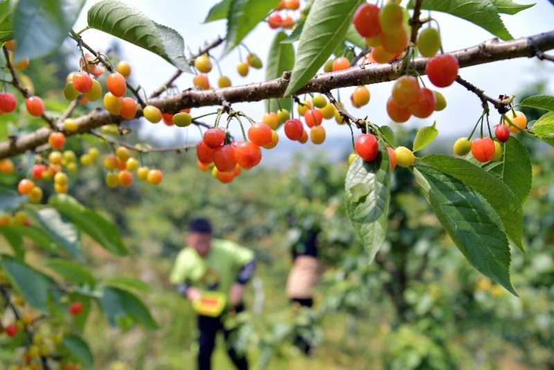 游客在湖北恩施宣恩县一生态果园里采摘樱桃。新华社资料图