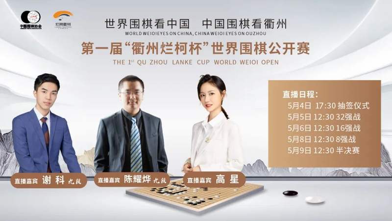 时隔三年,围棋赛再度恢复本来面目,第一届烂柯杯世界围棋公开赛本赛将于5月4日-9日在浙江衢州举行。是柯洁再展王者风范,还是申真谞延续网棋强势?是老面孔继续统领棋坛,还是新秀脱颖而出?世界棋迷瞩目的“面棋”大战一触即发!中国围棋协会与人民日报客户端、哔哩哔哩合作,将视频直播抽签仪式以及32强赛、16强赛、8强赛、半决赛,并邀请陈耀烨九段、谢科九段、高星四段现场解说焦点比赛。
